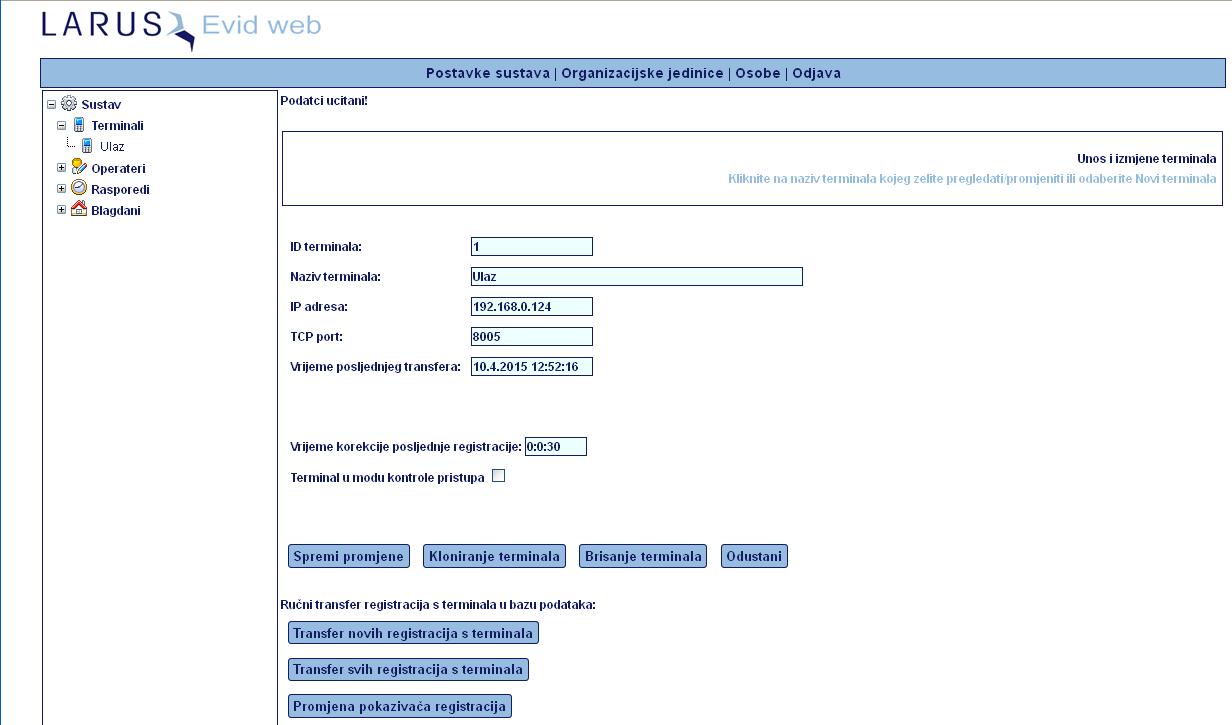 Program automatski prikuplja podatke sa različitih vrsta terminala, koji se mogu nalaziti na različitim lokacijama. Jedini uvjet pristupu terminalu je da je dostupan na lokalnoj mreži.Registracije mogu biti sa karticama ili sa otiskom prsta korisnika.