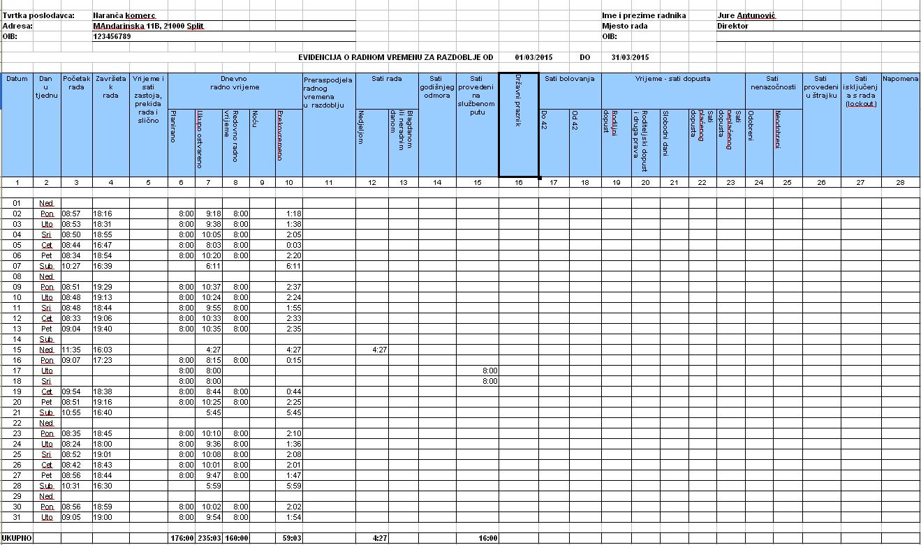 Evidencija Radnog Vremena