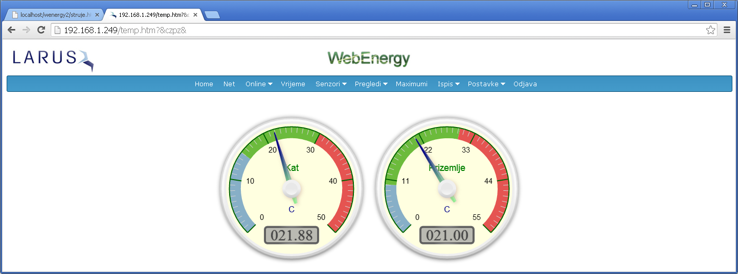 Osim mjerenja struje i napona, webenergy ima mogućnost i priključka 2 senzora temperature. Na taj način dobiju se usporedne krivulje potrošnje energije i kretanja temperature, npr. u objektu i vanjske temperature. Tako je moguće uštedjeti na potrošnji energije regulirajući temperaturu u objektu. Sustav omogućuje praćenje svih trenutnih mjerenih veličina; napona, snage, struje, faznog pomaka. Sve mjerene veličine se prikazuju "online" po svakoj fazi. Svi izmjereni podaci se spremaju na poluvodički disk. Ugrađeni diskovi su posebnim algoritmom zaštićeni od "efekta habanja", što produžuje vijek trajanja diska barem 10 puta. Kapacitet diska je dovoljan da čuva podatke više od 5 godina. Izmjereni podaci mogu se pregledati grafički i tabelarno. Web stranice ugrađene u uređaj daju jednostavan i pregledan prikaz podataka. Za pregled podataka nije potrebna instalacija nikakvog dodatnog programskog paketa. Sve se nalazi u samom uređaju. Prikaz potrošnje energije dan je za svaku fazu pojedinačno kao i sumarni prikaz sve tri faze. Na ekranu se može odabrati jedna ili više krivulja po želji.