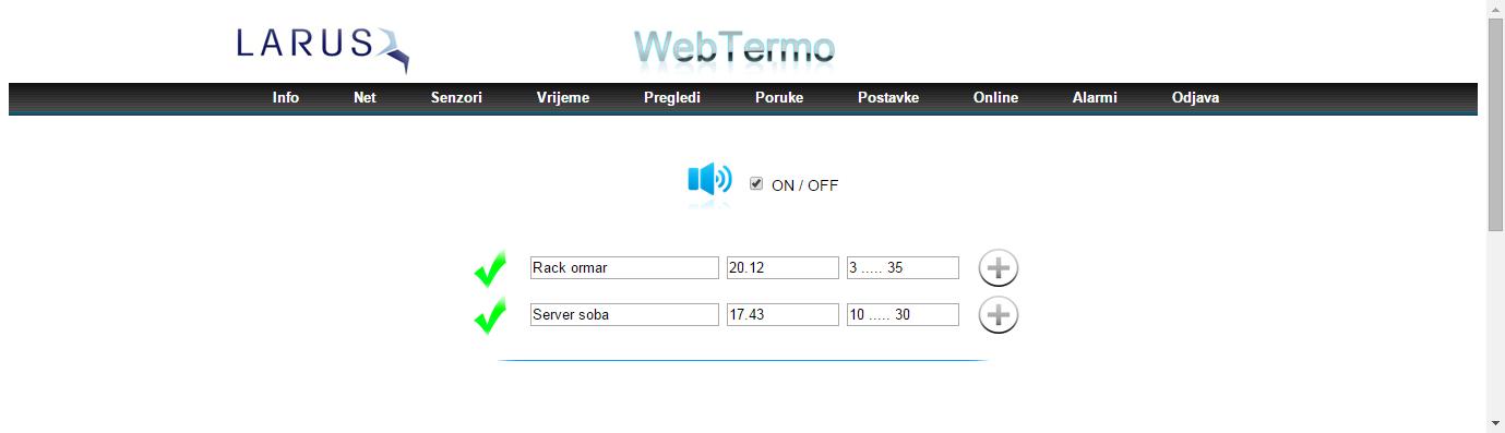 Uređaj podržava do 8 adresibilnih temperaturnih senzora s individualnim podešavanjima alarma i korekcije.