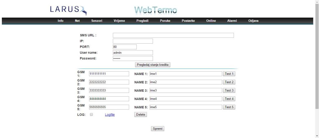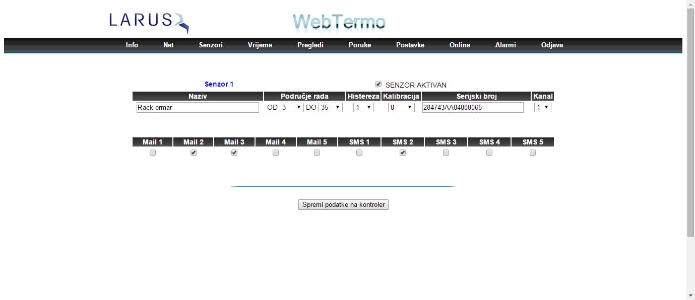 Sustav automatski šalje SMS poruke u slučaju prekoračenja zadanih temperaturnih granica.
