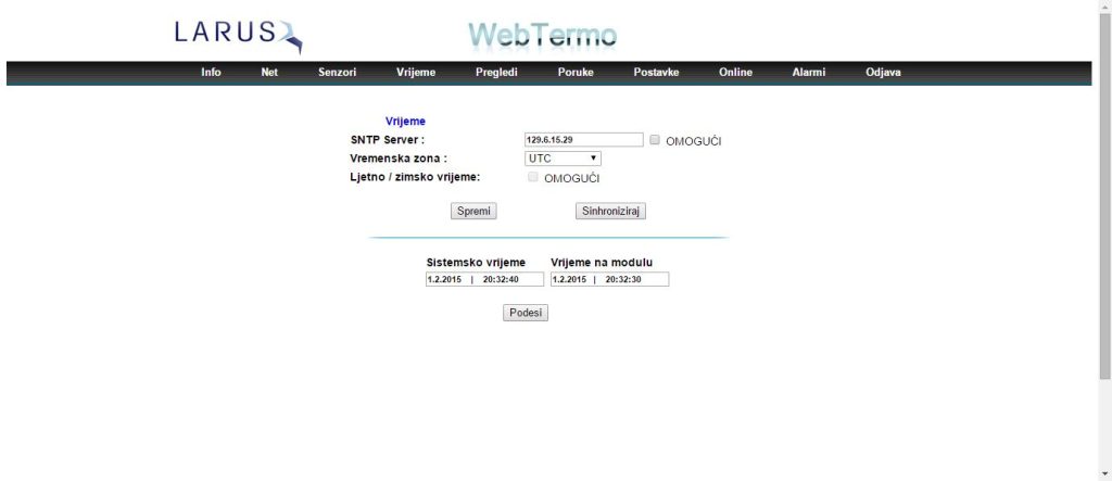 Sat sistemskog vremena ima baterijsku zaštitu. Podešavanje sata vrši se ručno preko za to predviđenog menija ili automatski putem interneta koristeći SNTP protokol. Putem TFTP protokola moguće je izvršiti backup izmjerenih podataka za tekući mjesec. Vrijeme backupa se može programirati. Senzori za mjerenje temperature su poluvodički, adresibilni i mogu biti udaljeni od uređaja maximalno 100 metara. Svaki senzor ima svoj jedinstveni serijski broj. Senzori su vodootporni, tako da je moguća njihova montaža i van objekta.