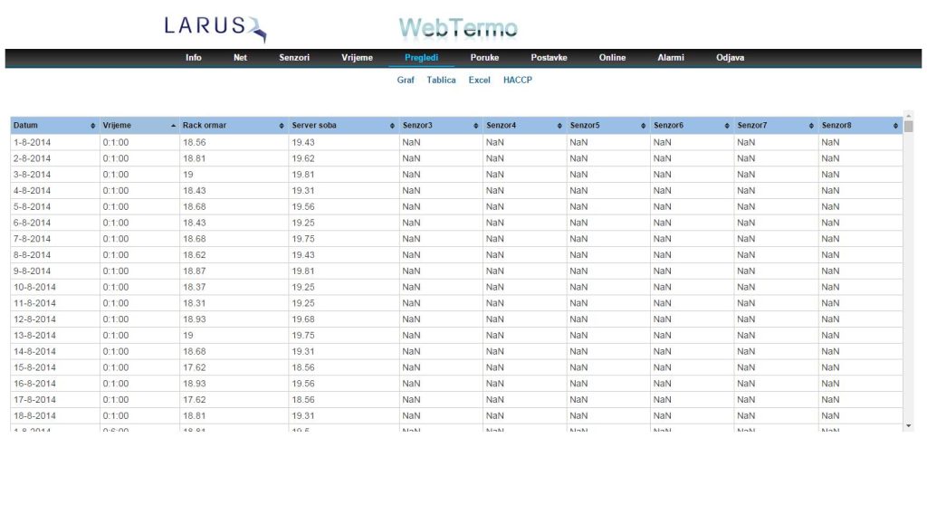 Webthermo nudi intuitivno web sučelje za nadzor, analizu, konfiguraciju senzora i generiranje HACCP izvještaja bez potrebe za dodatnim softverom.